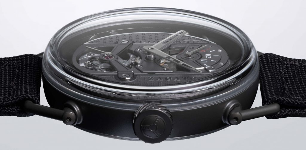 Au-delà du chiffre, le projet repose sur une réflexion structurelle. Inspirée des châssis tubulaires des voitures de course façonnées par Zagato, la montre abandonne le schéma classique d’un boîtier renfermant un mouvement.